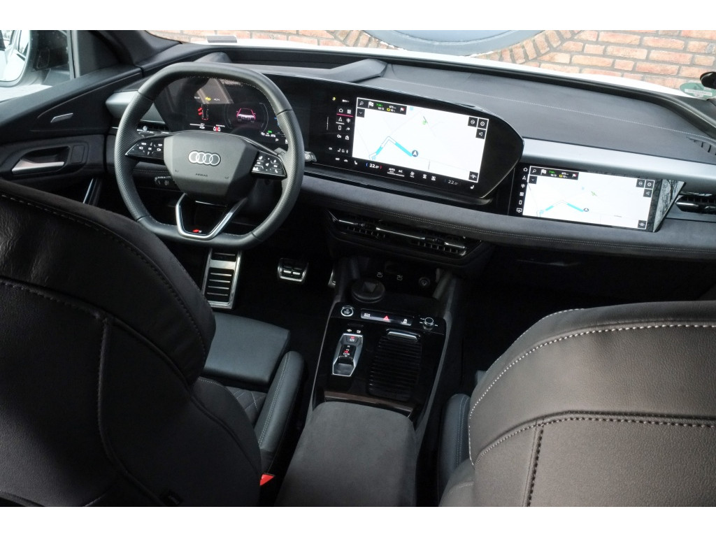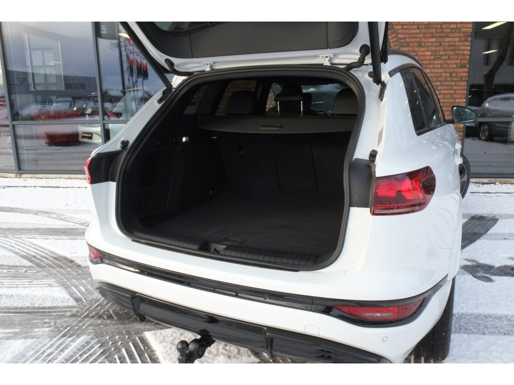 Het exterieur van deze Audi Q6 e-tron is voorzien van het Exterieur-pakket Zwart, wat zorgt voor een stoere en elegante uitstraling. De metallic lak geeft de auto een luxe en glanzende afwerking, waardoor hij zeker de aandacht zal trekken op de weg. Daarnaast is deze SUV uitgerust met een trekhaak (kogelkop zwenkbaar), waardoor je eenvoudig een aanhanger of caravan kunt meenemen voor avontuurlijke uitstapjes.